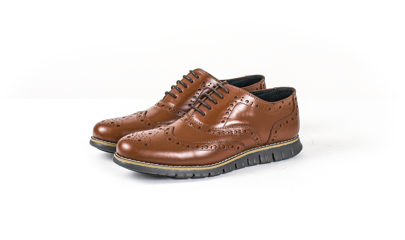 • Classic Wingtip Oxford Design in Premium Leather Upper