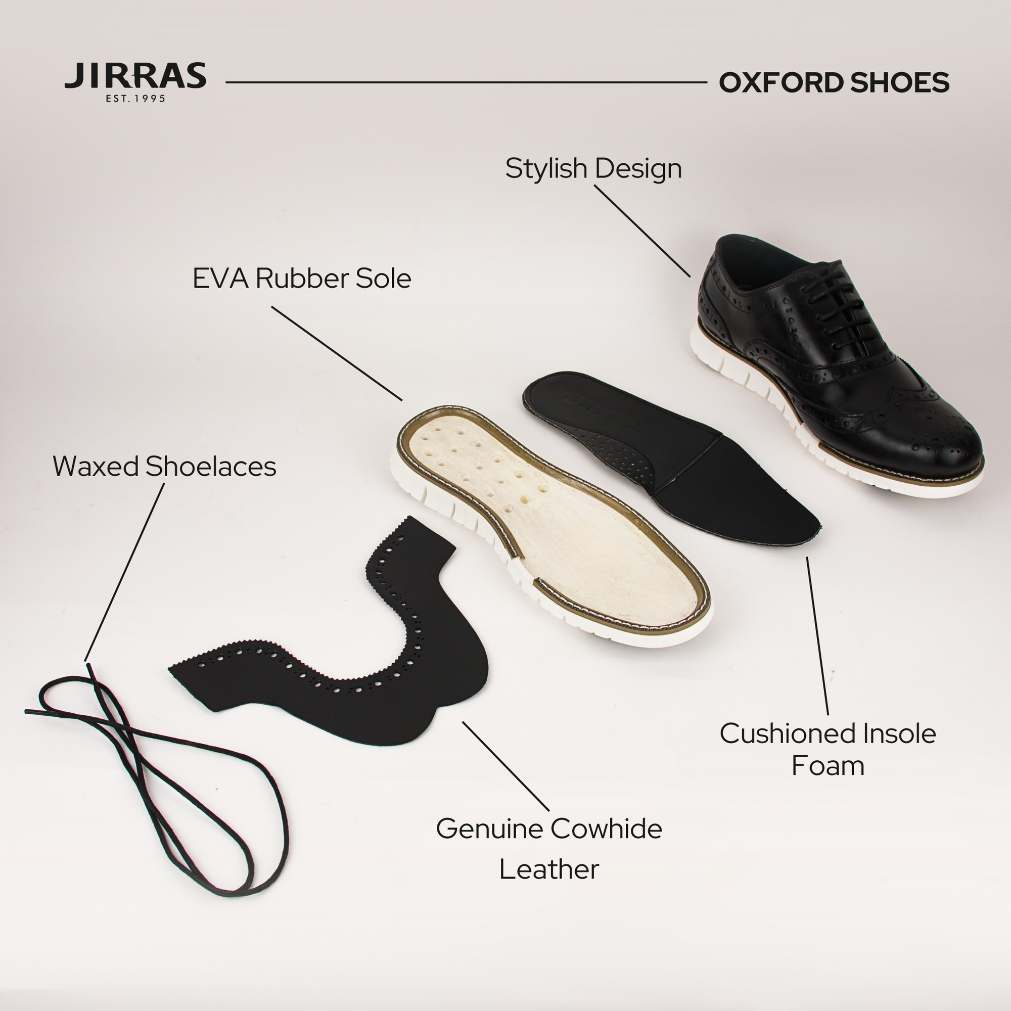 • Classic Wingtip Oxford Design in Premium Leather Upper